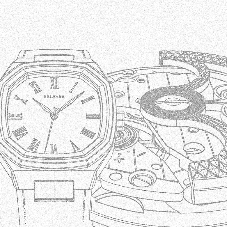 Belvans watch technical drawing